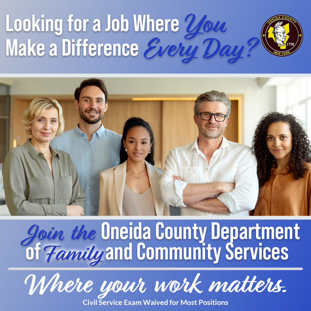 Work for Oneida County Department of Family and Community Services, where passion meets purpose and careers change lives!